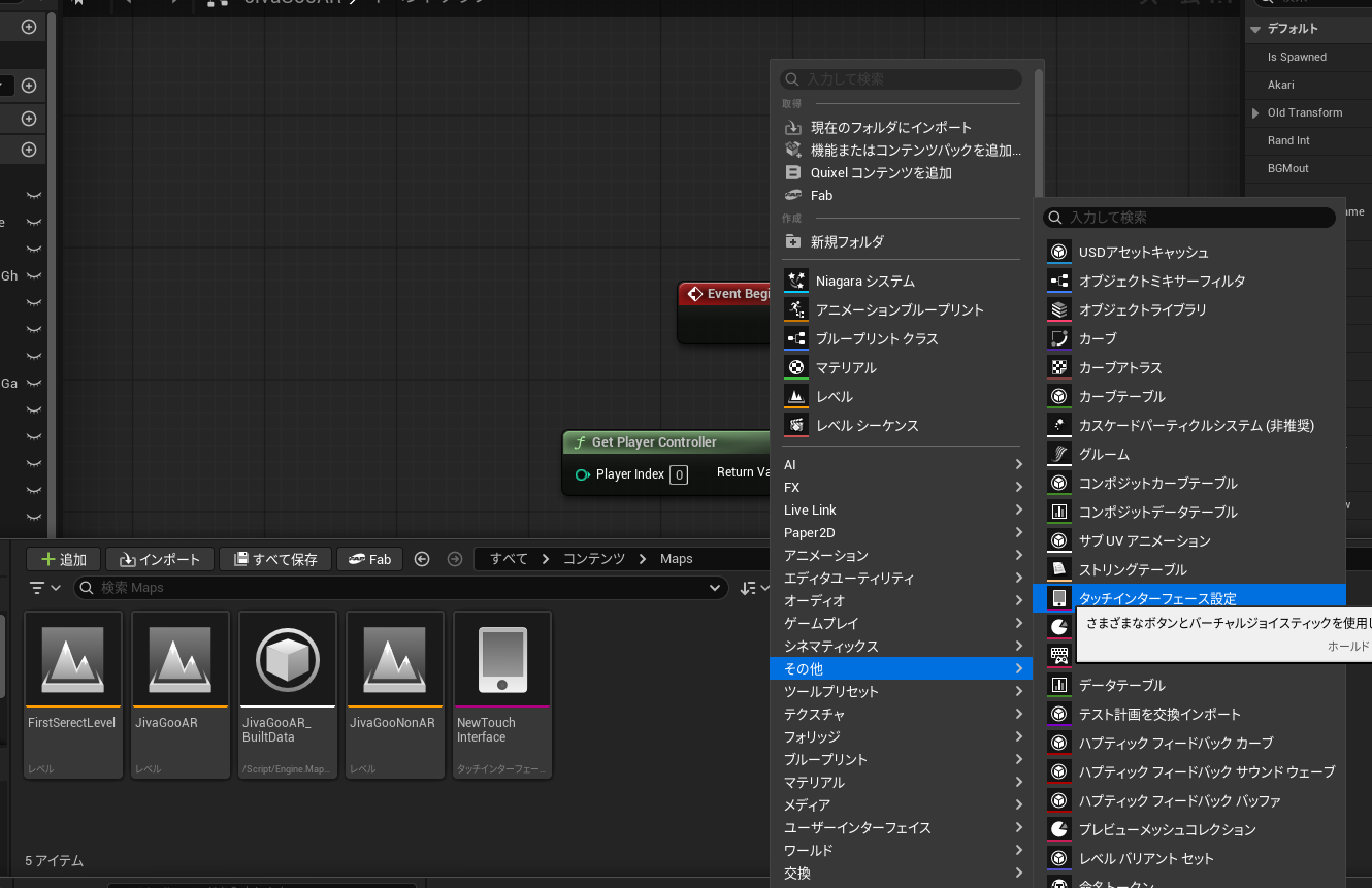 おばけスキャンではARのレベルで非表示にするのでEventBeginPlayで空のタッチインターフェイスを上書きする
