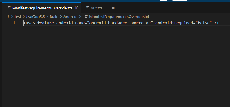 Build/AndroidにManifestRequiementsOverride.txtを作成して